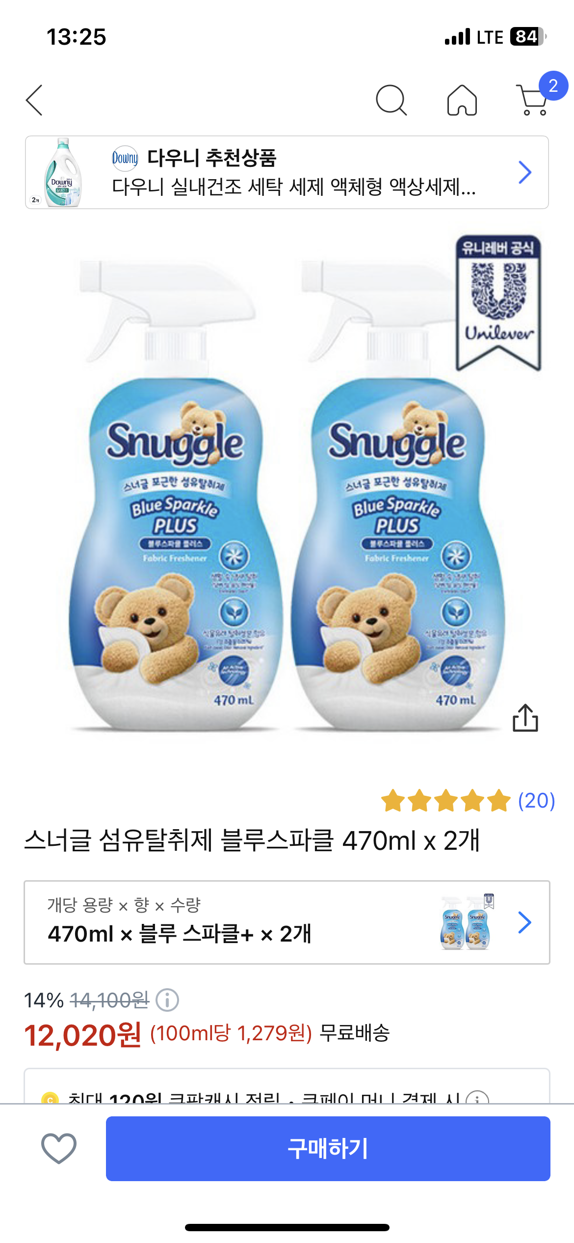 오늘은 스너글 섬유탈취제 블루스파클 플러스!