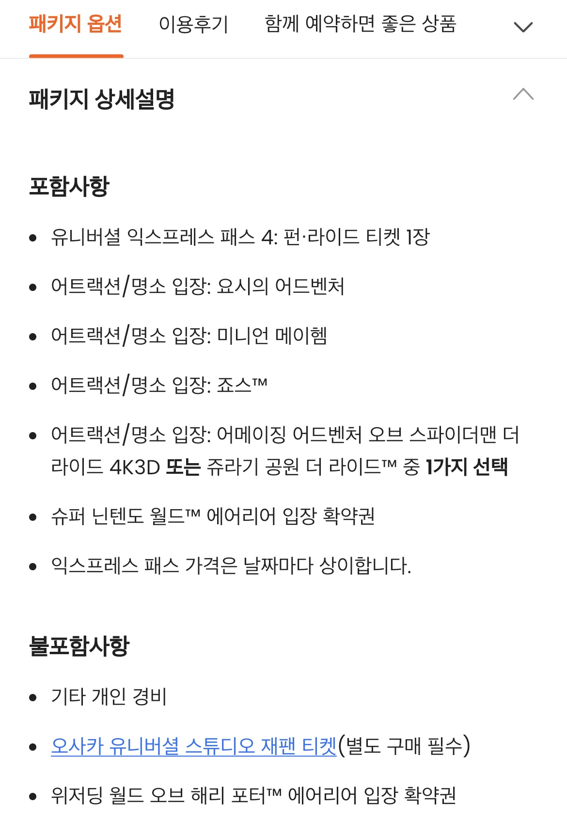 닌텐도 월드 확약권이 없는 익프 티켓도 있어서 만약 필요하다면 확인은 필수