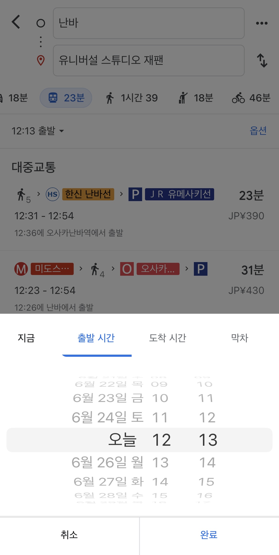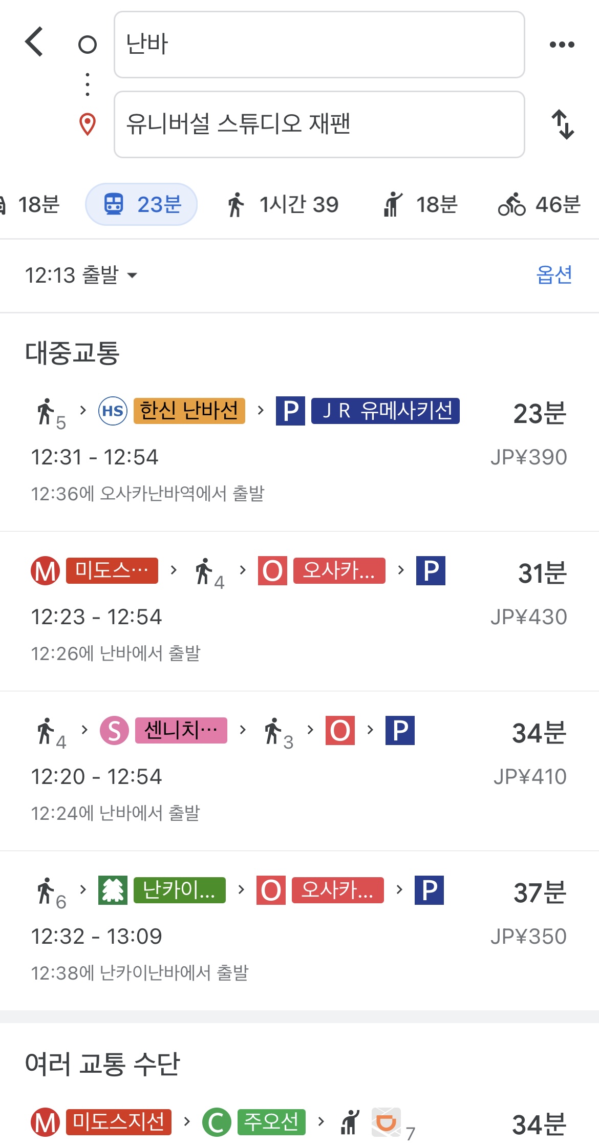구글맵에 현재위치와 목적지를 이용하면 일본에서도 길 찾기를 할 수 있었다