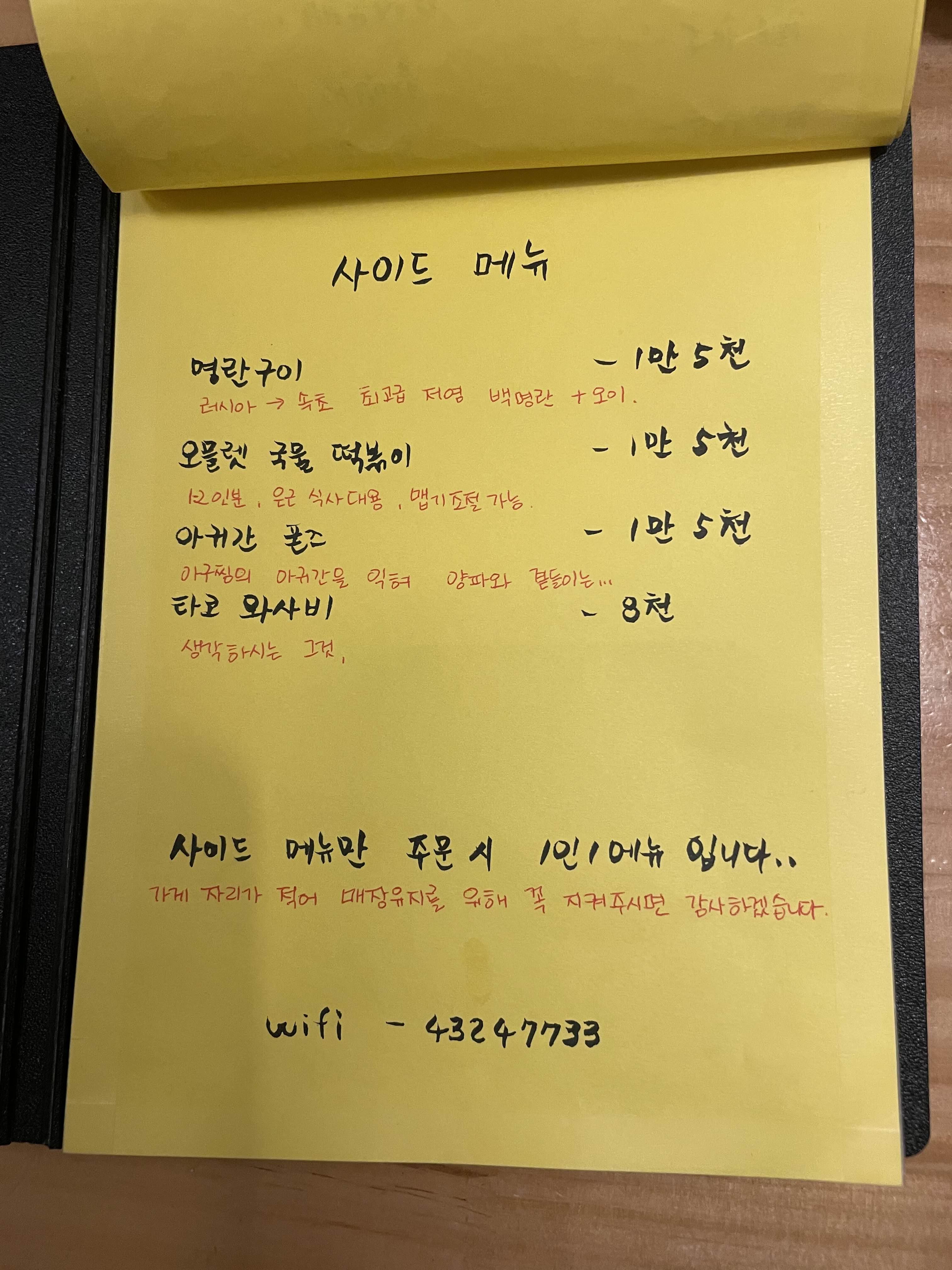 그것 외엔 딱히 없고 즐겁고 맛있게 먹었네요!